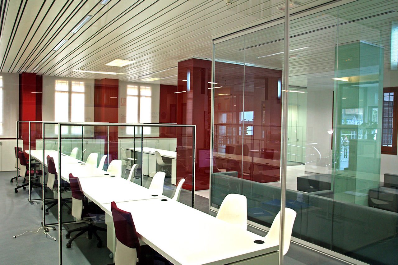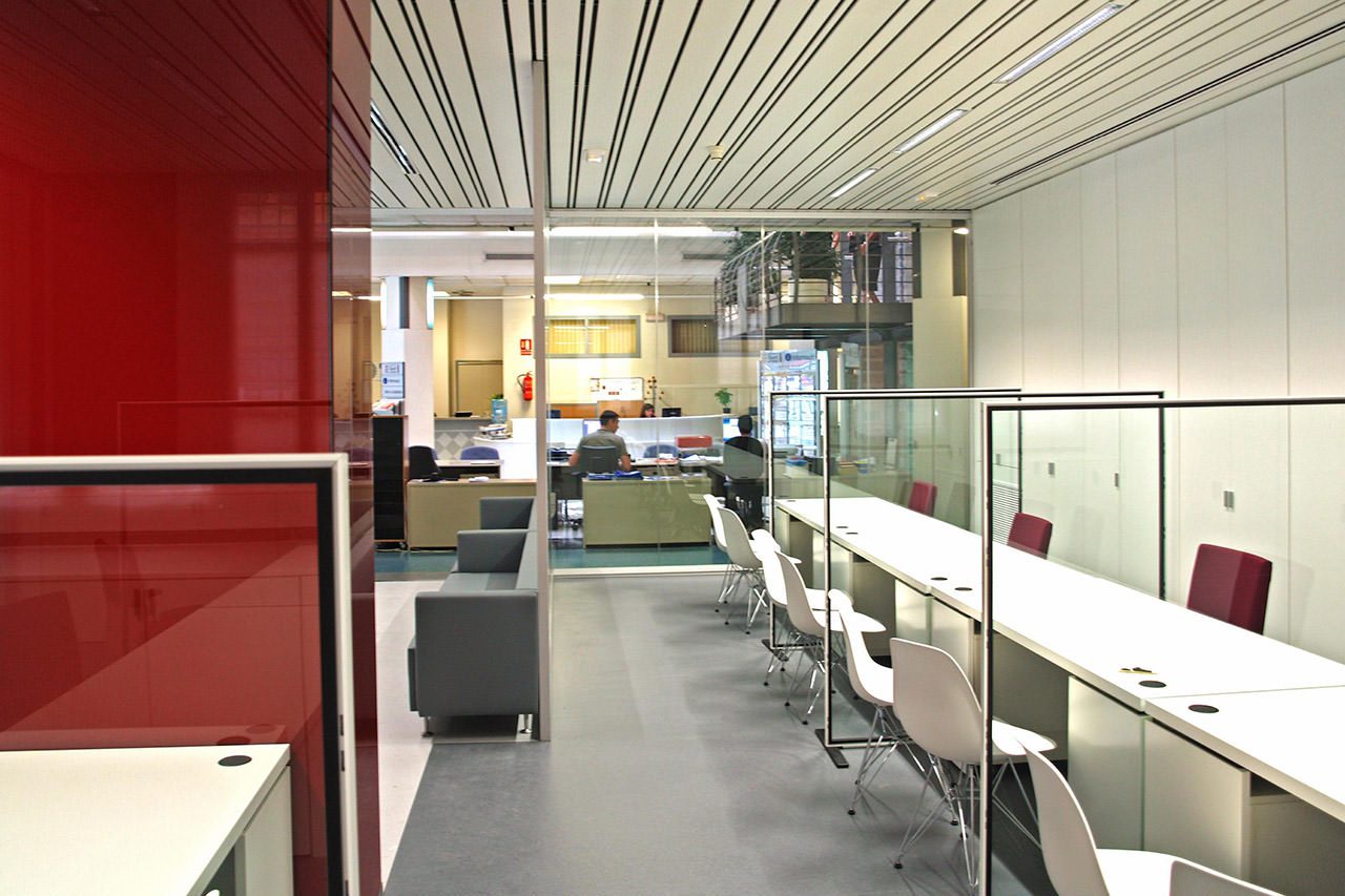 Para abordar estos desafíos, se optó por la instalación de mamparas divisorias de alta calidad que ofrecieran aislamiento acústico, privacidad y un diseño contemporáneo. Estas mamparas permitieron crear espacios de trabajo independientes, como despachos y salas de reuniones, sin comprometer la luminosidad del ambiente. Además, su diseño modular facilitó futuras modificaciones y adaptaciones según las necesidades cambiantes de la institución